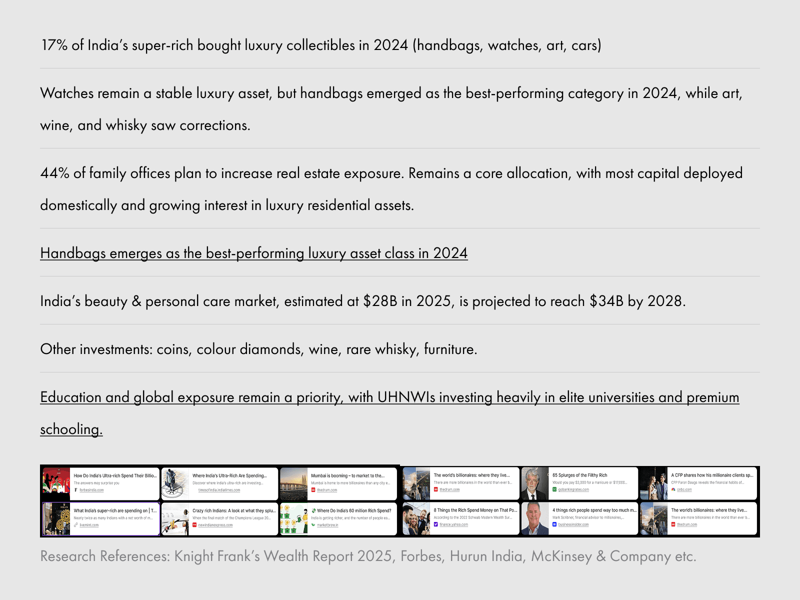 We then prioritized the categories that align most with the interests and demands of Indian UHNWIs.